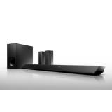 Bei der Sony HT-RT5 handelt es sich um eine 5.1 Soundbar. Zu den technischen Features des Geräts gehören insgesamt 550 Watt Leistung, ein integrierter TV-Tuner, automatische Lautsprecherkalibrierung, Bluetooth und NFC. 5 Lautsprecher (darunter 2 Standlautsprecher) bringen die Action realistisch und klangstark direkt ins Wohnzimmer. Die Sony HT-RT5 lässt sich aufgrund drahtloser Surround-Lautsprecher variabel im Raum platzieren. Mit der automatischen Lautsprecherkalibrierung passt sich das System optimal an verschiedene Umgebungen an. Die Sony HT-RT5 kann die Formate BD-ROM, CD und DVD abspielen.